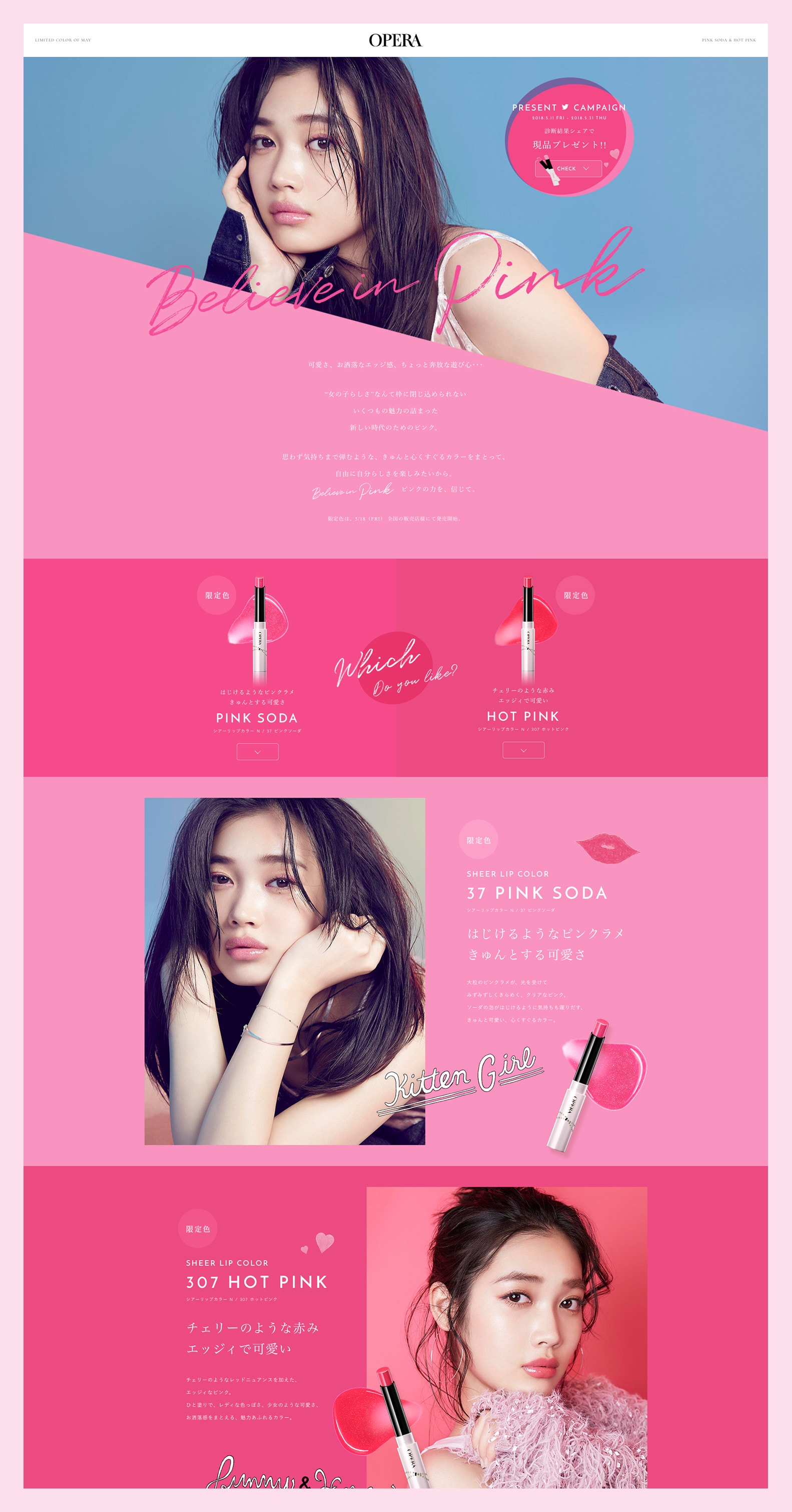 リップティントで知られるコスメブランド「OPERA(オペラ)」の限定色発売に合わせたビジュアルディレクションを担当。エッジィで奔放なピンクの世界観を表現した。イラストレーターのitabamoeさんを起用し、LPやリーフレットにリップ、メッセージなどのイラストを使用することで、エッジィさの中に可愛らしさを感じられるデザインに仕上げた。