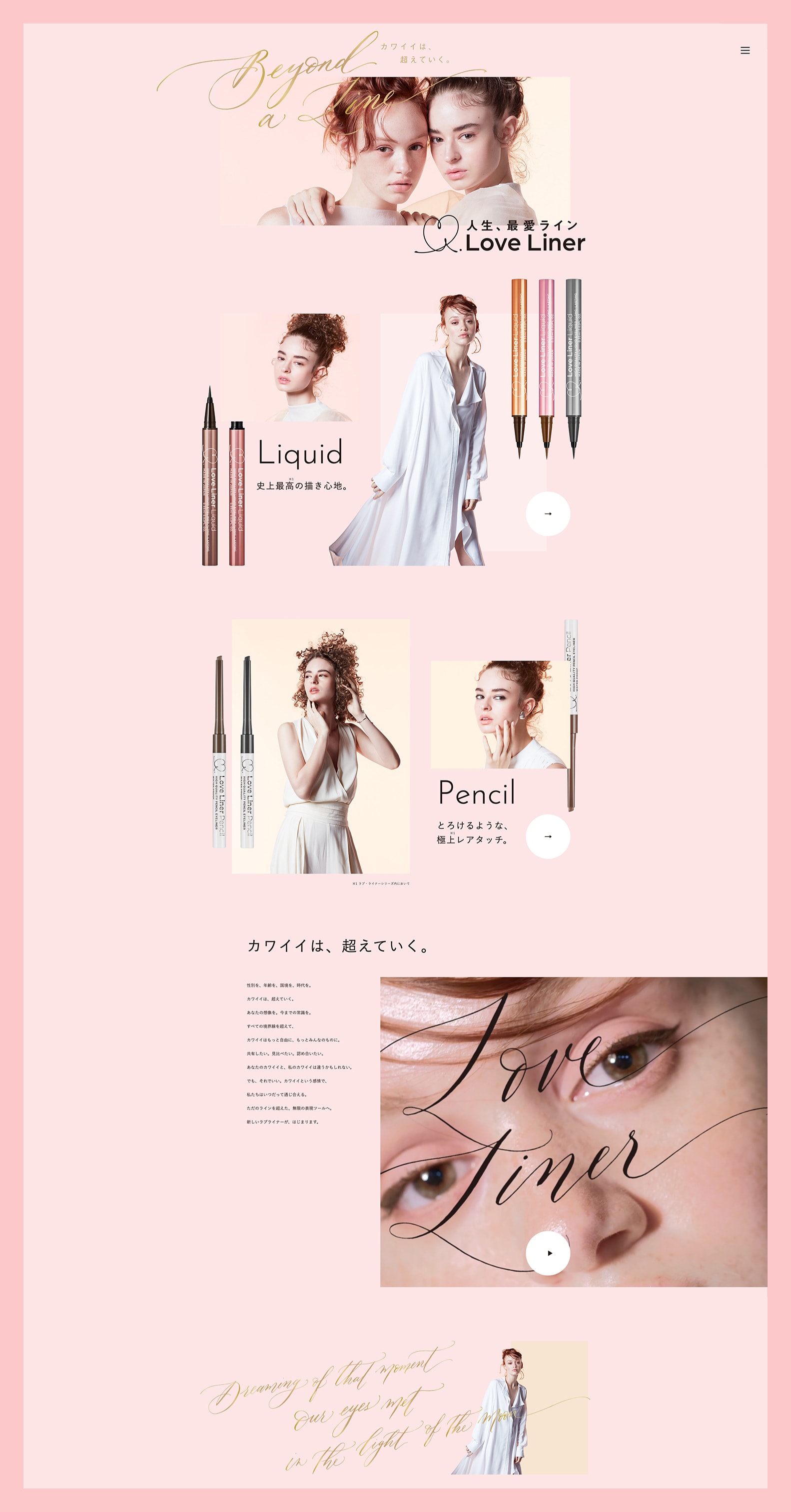 mshが展開するアイメイクブランド「Love Liner(ラブ・ライナー)」商品のリブランディングに伴って、WEBサイトもリニューアル。ランディングページ的に大胆なカラーリングとレイアウトでLoveLinerの持つ可愛さを表現。